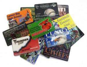 Spirit Cards are “credit-card” sized plastic cards sold and promoted by local schools or athletic groups as a fundraiser. Many other types of groups sell Spirit Cards as well such as Pop Warner Football Teams and Soccer Associations.